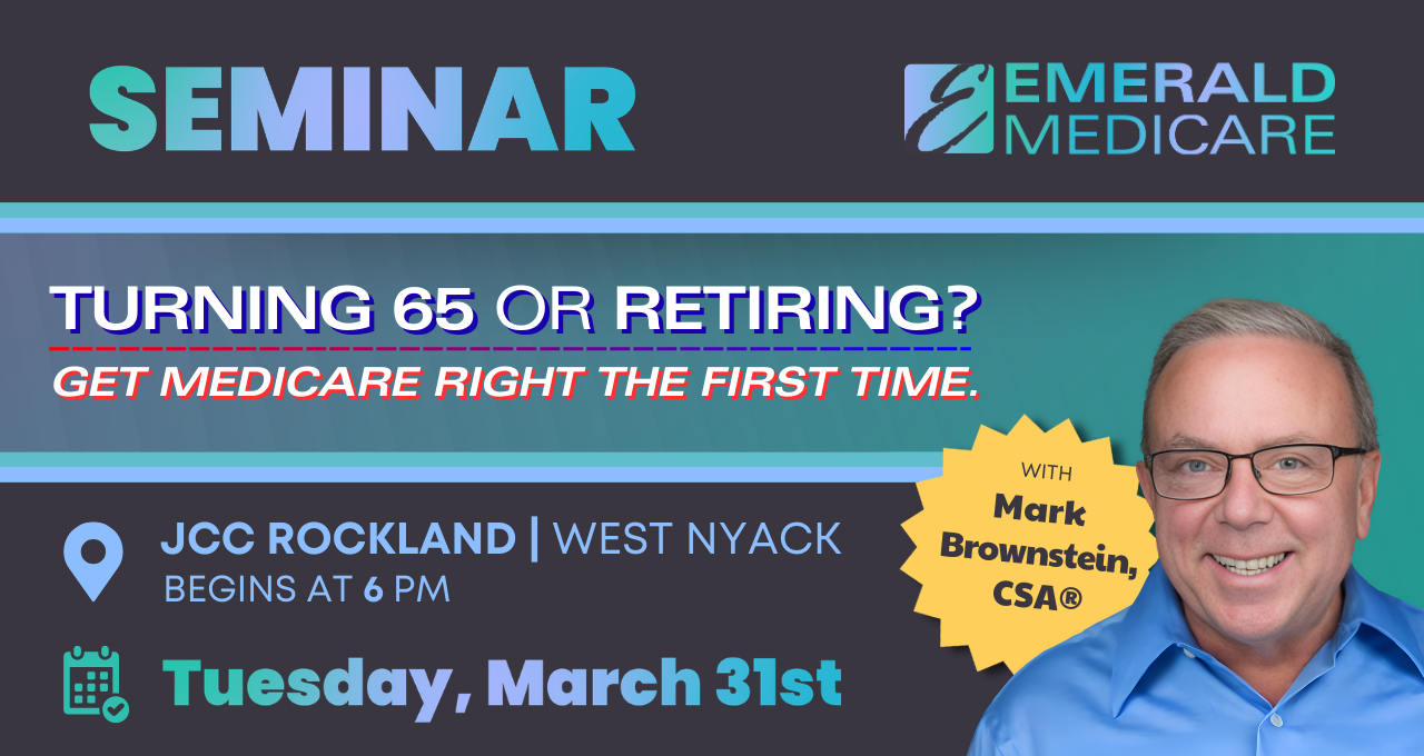 For webinars, anyone across the entire U.S. can sign up to participate and learn. Live events are delivered nationally as requested. Local consumer Emerald Medicare initiated seminars and often in the NY / NJ / CT /MA/ PA/ and MD areas. We Host Seminars for: